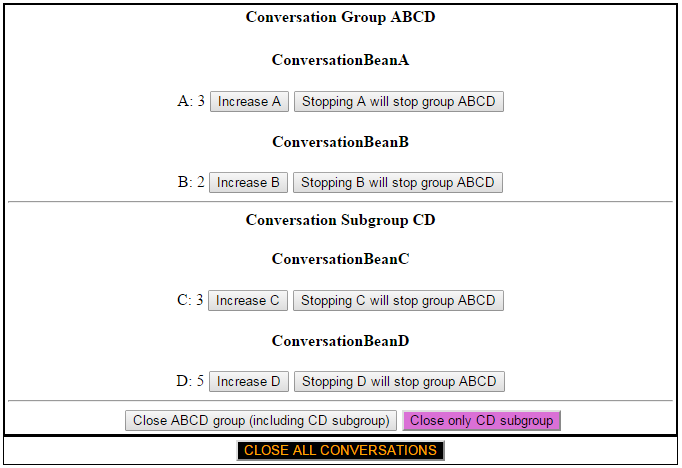 example, let's define a group named ABCD (contains ConversationBeanA, ConversationBeanB, ConversationBeanC and ConversationBeanD), and a